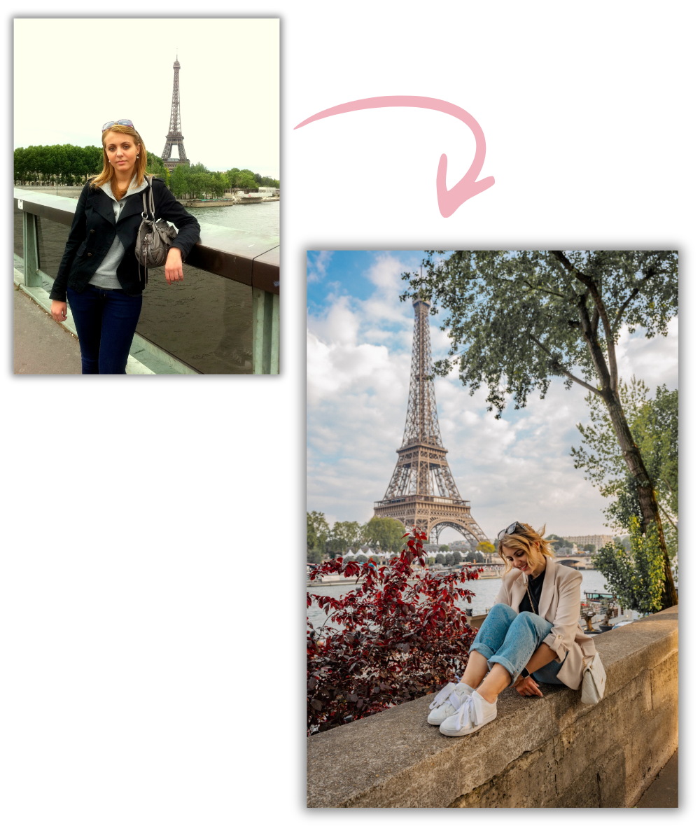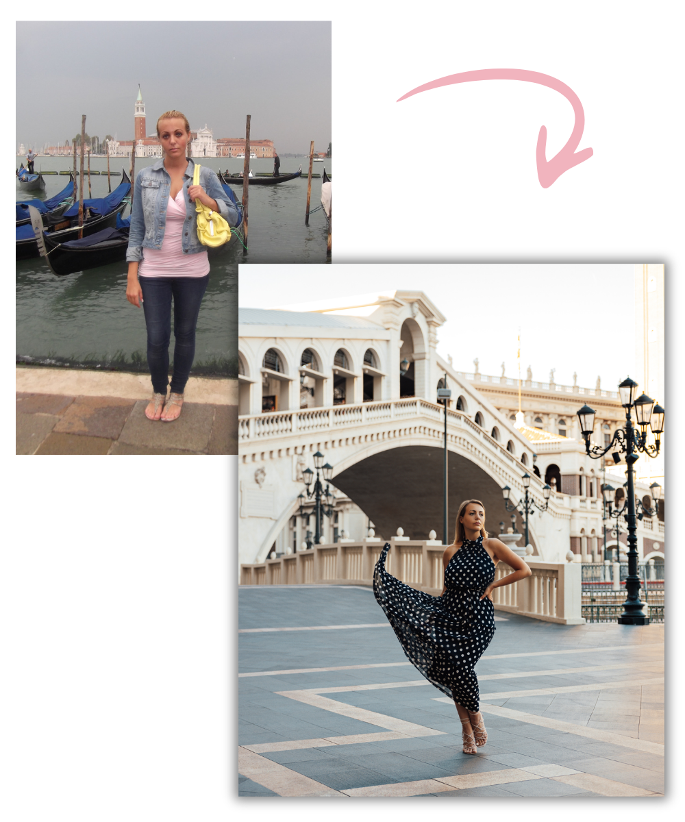 Diese Fotos wurden von Frauen aus dem Kurs aufgenommen, nachdem sie die Techniken im Picture Perfect Club gelernt haben. Unterschiedliche Orte. Unterschiedliche Körper. Unterschiedliche Kameras. Dieselben Fähigkeiten.